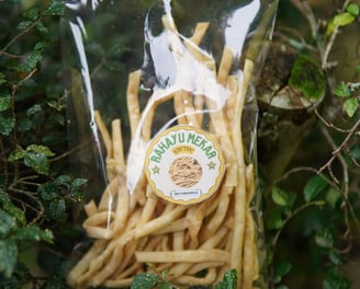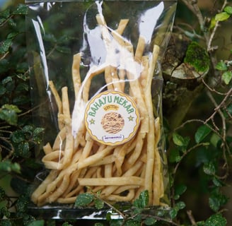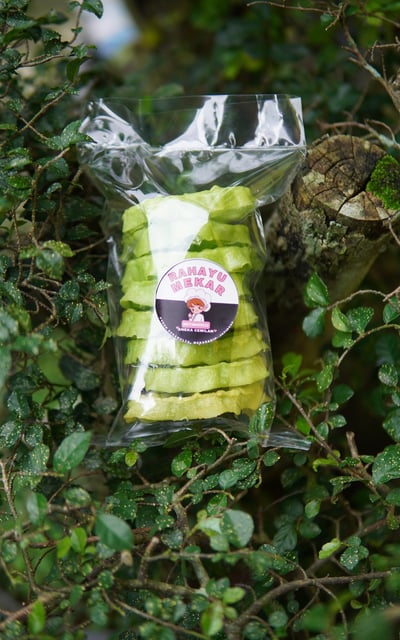 Selain produk berbahan dasar tepung, Rahayu Mekar juga memproduksi camilan khas lain seperti pangsit dan keripik pisang. Keripik pisang ini dibuat menggunakan pisang Roid, salah satu jenis pisang yang banyak ditemukan di Kecamatan Jatigede. Pisang Roid dikenal dengan rasa manisnya yang khas dan tekstur yang pas untuk dijadikan keripik, sehingga menjadikan produk ini semakin diminati oleh konsumen.